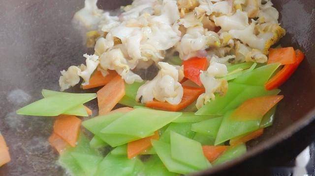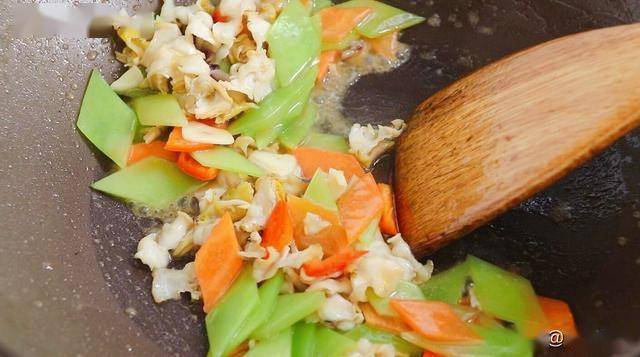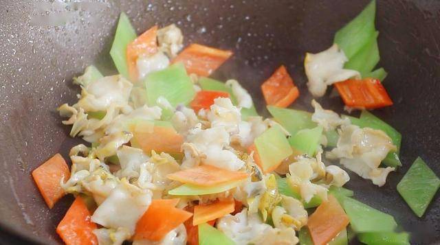 這是爆炒海螺片的做法,配上萵筍和胡蘿卜,鮮上加鮮,脆嫩爽口